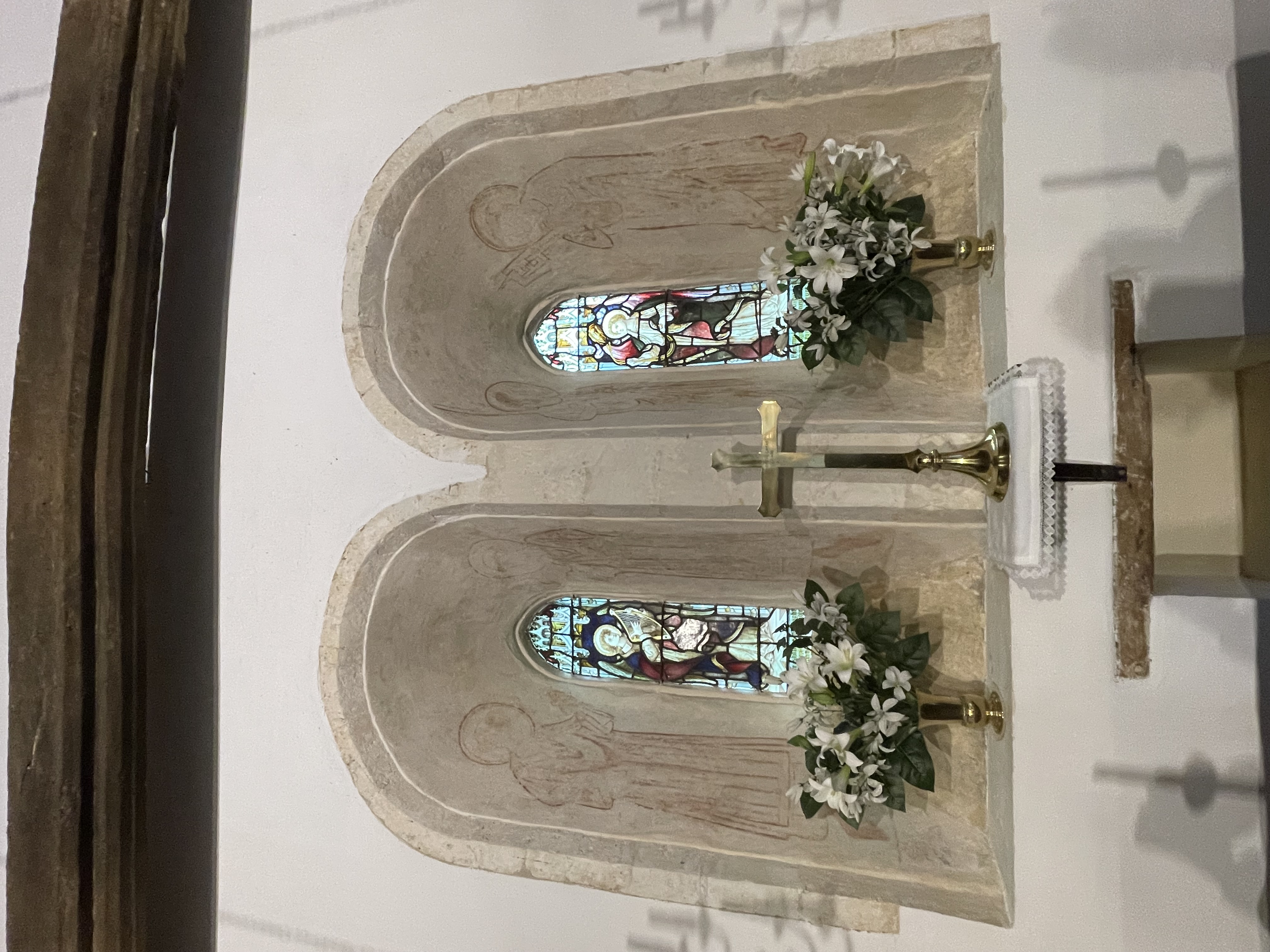 In 1919 the plain East window was replaced by stained glass. The Reredos behind the High Altar was dedicated on 20 May 1928 by the Bishop of Buckingham.