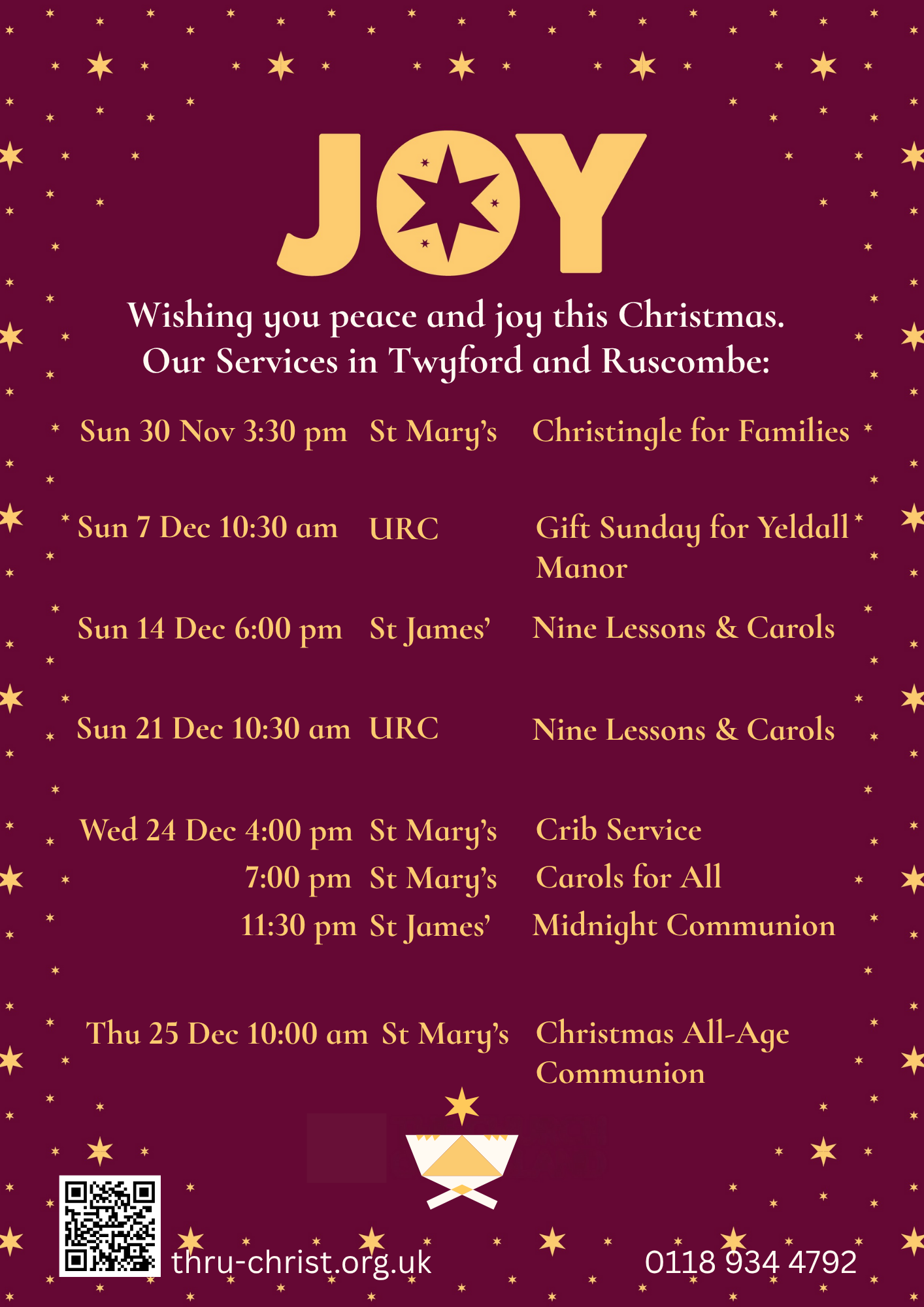 The United Reformed Church will run their annual Gift Sunday for our Yeldall Manor, one of our Mission Partners. You are invited to bring gifts to the URC service on Sunday 7th December at 10:30 am. For further details please see: Our Mission Partners
